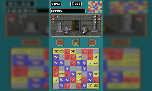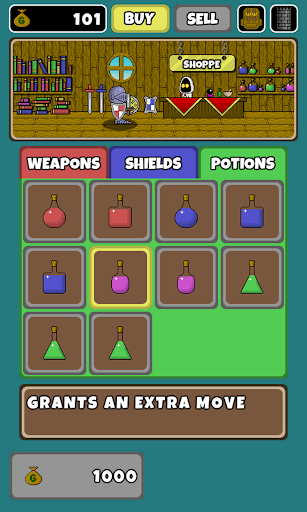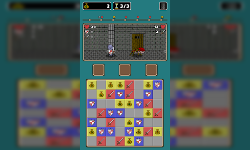 Explore a dungeon and battle fearsome monsters within. Use your match 3 skills to attack and defend yourself. Match 3 icons to attack and defend yourself from the monsters. Matching 3 swords will add to the damage you deal to the monster. Matching 3 shields will reduce the amount of damage you take from the monster.