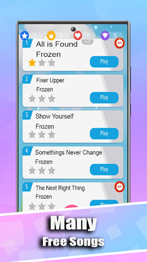 Frozen New Piano Tiles Game challenges you to play your favorite Frozen songs using the piano.