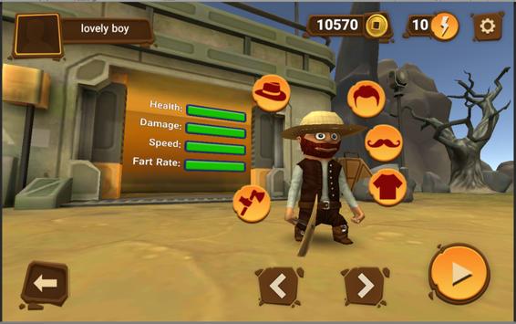 Fart fight has a fully customizable character which can be unlocked by rewards.