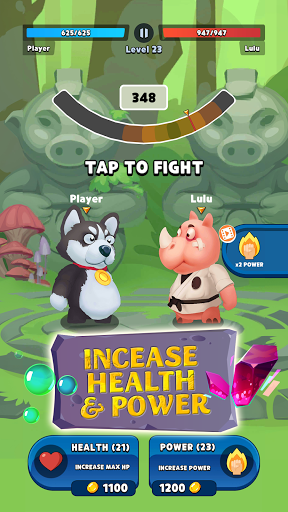 The stronger animal will come to visit you, get ready before each turn, increase your health and attack damage by using gold