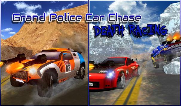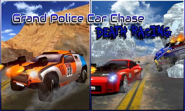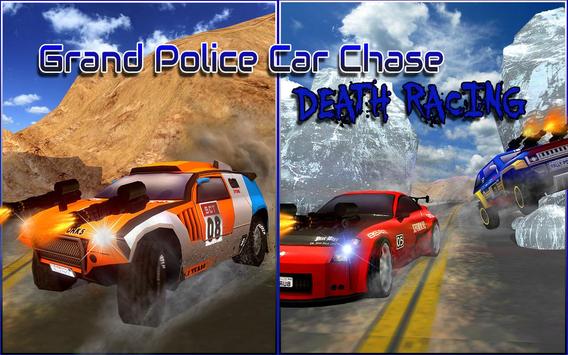 Grand Police Car Chase: Death Racing is the newly designed offroad racing car shooting game where you would have multiple choices to be a police car driver and chase death racers or be a combat race driver on death racing specialized offroad track. Take any police car you like, squad car, muscle car, 4x4 police offroad car, war cars, race cars, blaze car, cop car and escalade or Luxury Police Prado car and chase drift master on muddy tracks. When getaway racer go offroad there must be a courageous driver who can chase the robbers or cops pursuing thieves on rugged terrains and bumpy roads as the user would drive the car in open world. Either it is Police car chase or racing car battle shooting, both the fully indestructible and risky in deadly mountains. Up and down roads in mountains and sharp turns make police car driving risky and play as a road warrior. Basically it's a death racing shooting arena where you have the both option either you can play as a death racing car shooting driver to race in battlegrounds on roads against other Hot Pursuit full throttle applied shooting cars in car speed simulator while cop car is in action as police pursuits or police chasing games.
