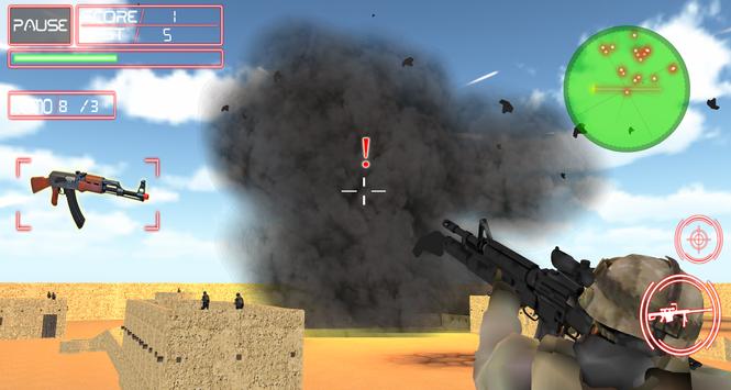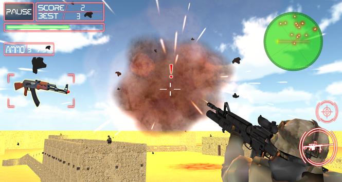 Пустыня удара Битва патриотическое солдат война в песчаном окружающей среды. Ваше ВВС бросает рядом с вашим вражескую базу и вы должны очистить область. You солдат оснащен несколькими системами вооружения. Враги также оснащен передовой системой вооружения. Цель ваших целей, снимать их и завершить миссию.
