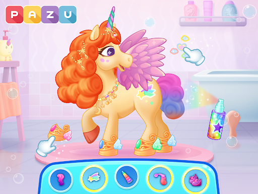 Care for your unicorn, wash it, dress it, choose its colors and style and make it your own cute pony.