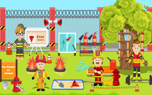Stay ready to follow command of fire station chief. Drill in training ground to stay active and strong and become real life hero brave firefighter. All the squad of firefighters undergo training as group so they can complete tasks better. They train dogs to provide assistance for rescue missions.