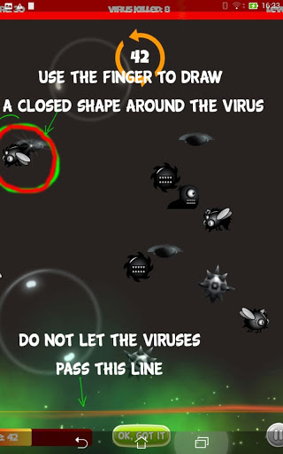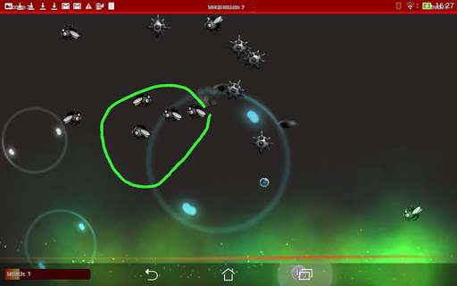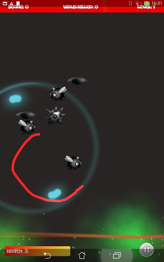 Draw circle paths to protect your life stream! Add a force ring to destroy all the evil virus.