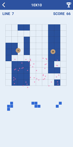 ✔ Two boards 8x8 and 10x10. Twice the fun!. Move blocks on the 9x9 grid to build lines.