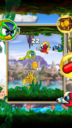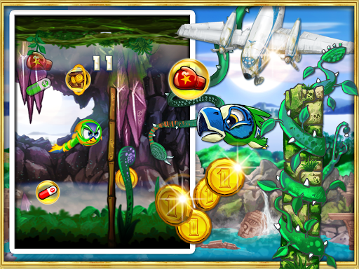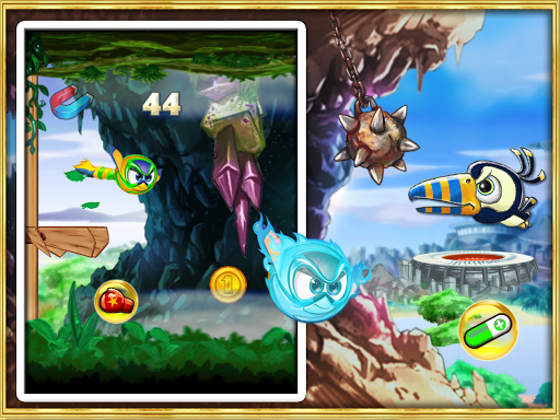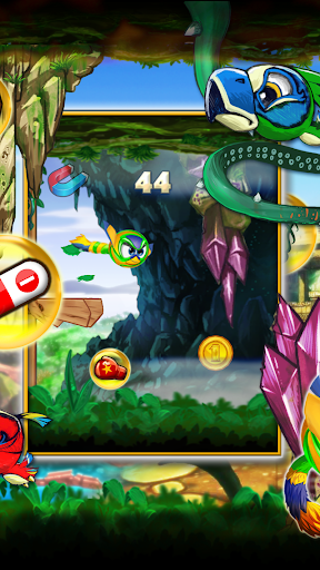 Cut across the crystal cave - full of diamonds and jewels and run Flappy Peppy through the ancient golden amazon temple area to collect even more coins! (The amazon temple area is full of gold coins – a good chance to boost your score!) There you will have to fight vs. plants, snakes and the giant jungle ventilator.
