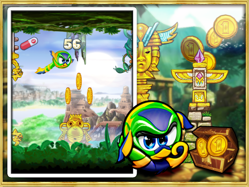 Discover the dangers of the jungle. There are the angry looking monster statues, the flappy but happy birds, nasty plants, the amazon temple, golden snakes……