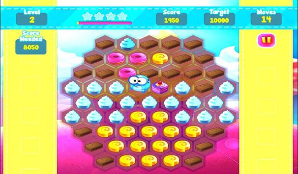 Your monster can eat the groups of three or more cakes that are near him. More cake you eat more score you have. It will make the monster happy.