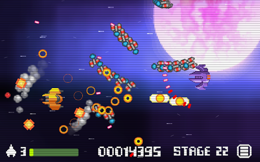 Free-to-play classic retro-style side-scrolling space shooter game where you control a space ship in the galaxy to defend against enemy spaceships, bullets hell, UFOs, asteroids, big enemy bosses, and space invaders in the galaxy far away.