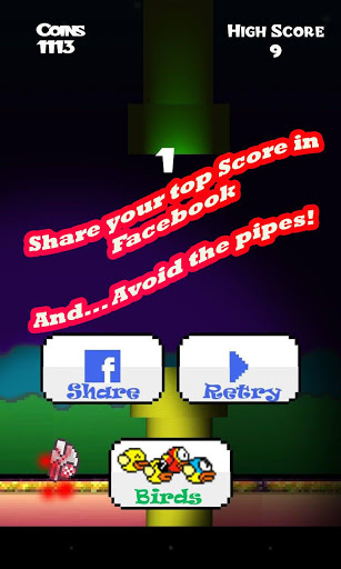 Each time that you go trough a pipe you will earn a coin (Classic right?) :) that after you can change by more players (your friends) or stuff.
