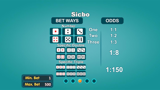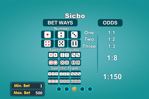 - Number Bet:One, Two, Three, Four, Five, Six. Odds: 1:1 on one dice, 2:1 on two dice and 3:1 on three dice.