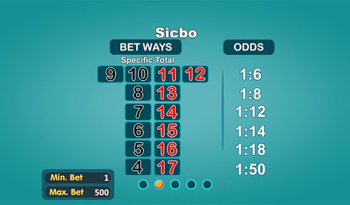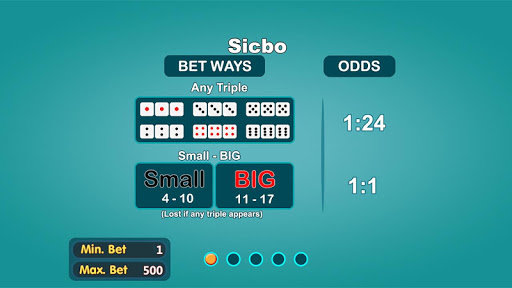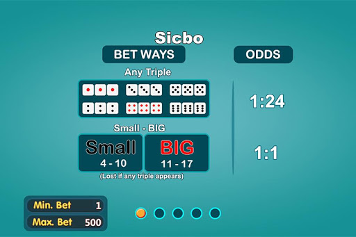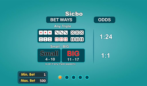 Sic Bo is an Asian dice game, also known as big and small or hi-lo (ไฮโล) in Thai, tai sai (大細), dai siu (大小) in China, Sicbo (Over Under), Xoc Dia (Odd Even) in Viet Nam, is an unequal game of chance played with three dice, and of ancient Chinese origin. Grand hazard and chuck-a-luck are variants, and of English origin. The literal meaning of sic bo is "precious dice", while dai siu and dai sai mean "big [or] small".
