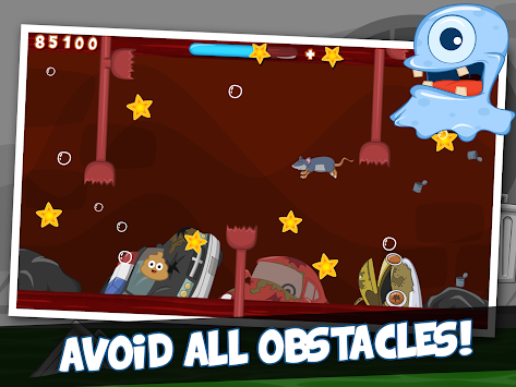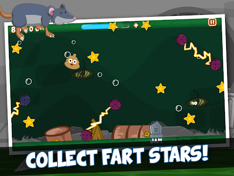 Farting Poo Go is a super addictive and funny endless run, jump and swim comedy game. Tap the screen to make our hero farting poop Pete swim and dash up to avoid obstacles and enemies such as mines, rats, plungers, alligators, jellies and other smelly sewer monsters! Collect as many fart stars as you can on your journey through the smelly sewer to maximize your high score. Enjoy the funniest soundtrack of the year with funny fart sounds at every turn.
