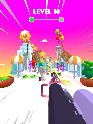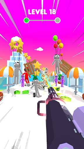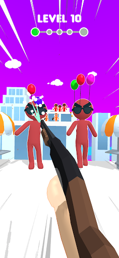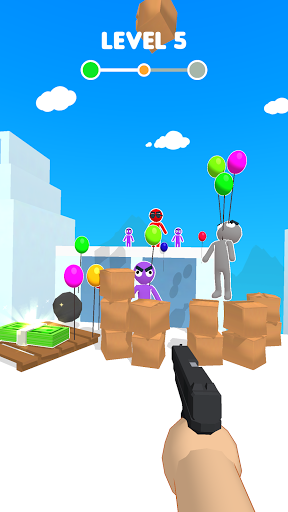 Use your balloon gun to get rid of all your enemies! Shoot to stitch balloons onto any surface : boxes, plants, people... Stitch even more balloons onto heavier objects to make them fly away and clear your path!