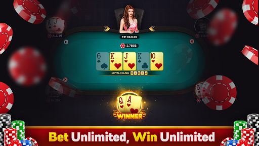 • Unlimited Bet: Want to bet till death? Enjoy out all-in feature and win unlimited chip without pot limits!