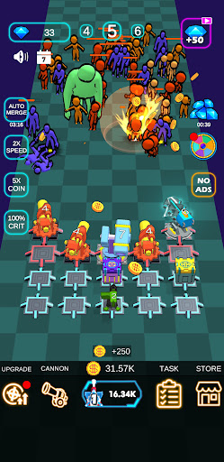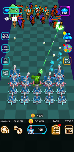 Unlock a variety of cannon in your arsenal. Merge to upgrade the cannon and position tactically to defend against increasingly powerful waves of cubes and deadly bosses.