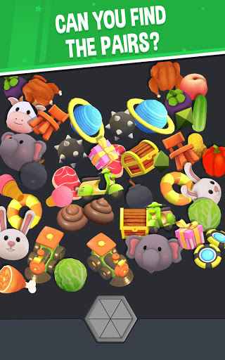 You need to Match 3D objects on the ground and pop them all ! When you clear a level, you will find new objects to pair. Enjoy the collections of Pair 3D lovely animals, delicious sweets, yummy fruits, cool vehicles, interesting professions, exciting emojis and more.