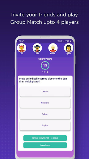 This multiplayer, general knowledge quiz app is a packet of information that is designed to be shared with your friends. Knowledge is power and power is gained by sharing knowledge. It forms an ultimate multiplayer GK quiz app that supports up to 4 players at a time. This quiz can also be played as a single player, with a random opponent or even with your group mates. You can choose a random opponent from anywhere on earth and challenge them with your knowledge power.