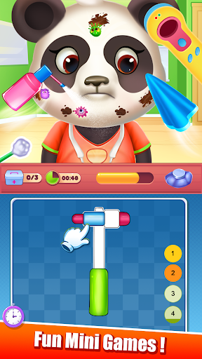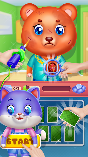 Play different puzzle type mini games and get your clinic tool to treat cute pets.