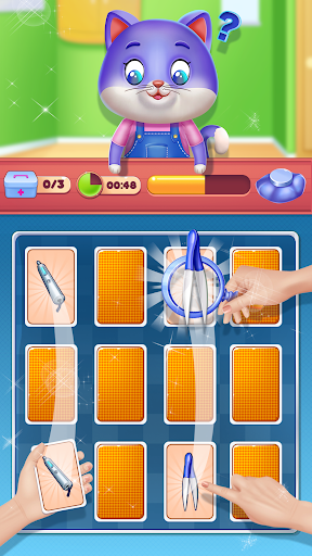 *Match card -Tap and match card with similar tool picture and unlock tool for cute pet.
