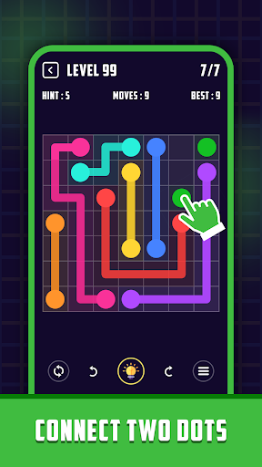 ➪ Connect dots gameplay ranges from simple and relaxed, to challenging and frenetic. This puzzle game is the best mind practice to solve a hard puzzle in a very short time.
