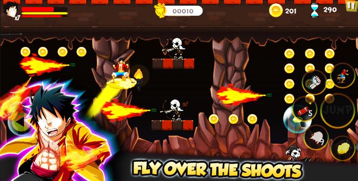 Move king of pirate phenomenal colossal extensions, mountains and stairs, pirate battle against ancient villains, refrain from falling blocks, find coins and power levels wrapped, collect coins, swim pirate warrior Through dangerous oceans, use your one, piece weapons to attack Elephant gatling pirate, use jetpack to fly, jump into part of trials and universes and addictive