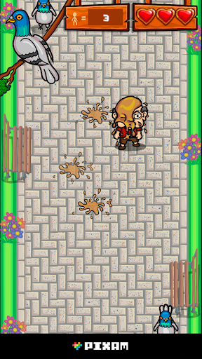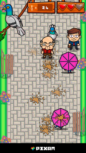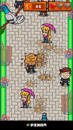 Acerte o máximo de humanos que conseguir! Se algum escapar, perde uma vida! Se acertar alguma pombinha, perde uma vida! Perder 03 vidas, perde o jogo! Acerte cocô em todo mundo!