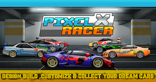 Retro Pixelated Pixel Racer, features a completely customizable pixel drag racing experience that lets you build the ultimate car collection like jdm cars , german cars , muscle cars etc.