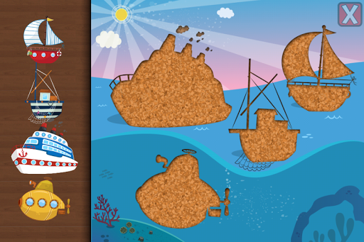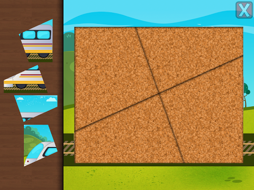 A fun puzzle game for toddlers and kids from ages 1 to 6 featuring 16 cartoon transports such as train, plane, jet, helicopter, ship, boat, submarine, locomotive and more in 20 shape & tangram puzzles!