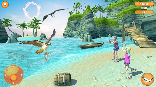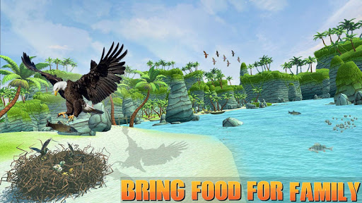 "In this most realistic 3D game, Eagle Family Survival Hunt: 3D Birds Game about being a bird, a simulation, you get to be a wild and golden eagle that hunts and flies around its territory to visit all the trees in the jungle and search for food. Now you can play as real Wild Eagle and be the most powerful animal in the forest. Start your own family of eagles, feed your young ones, fight against other animals, evolve your Eagle to become the strongest Golden Eagle ever. This eagle simulator is a realistic parenting game. You have to feed your young ones and catch various prey like fish and other animals until they are strong enough to leave the nest.