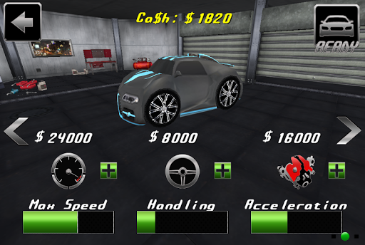 UPGRADE YOUR CARS from 3 upgrades available: MAX SPEED, HANDLING and ACCELERATION