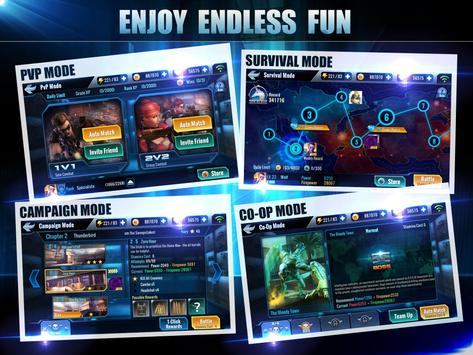 - Enjoy rich gameplay in campaign mode, survival mode, real-time PVP and zombie CO-OP mode