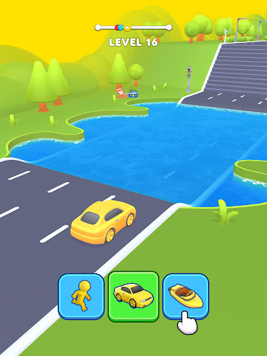 A Shape Shifting Game that lets you switch between three different vehicles: a car, a helicopter, and a boat: as they traverse different tracks and environments and take you across all elements of land, air, and sea. To conquer them, you need to adapt and do it quickly in a shape transform game. Transform the character according to the environment and become the winner by defeating everyone else in their own change shape transform race game.