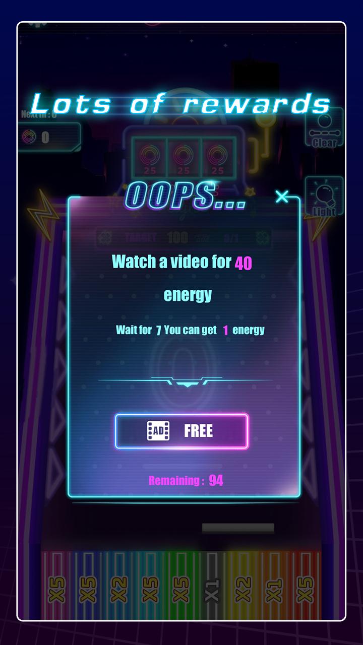 -You can use different props to help you play the game, clear all obstacles for 60 seconds or automatically light up the prize pool!