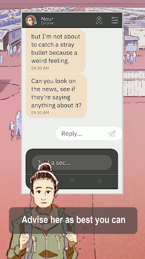 By reading instant messages and choosing response options, players help Nour overcome the hardships she will encounter.