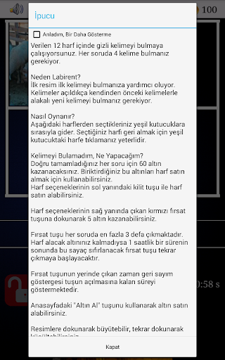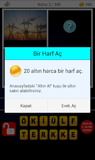 You earn 60 golds for each question. Use these golds to buy a letter. You can buy a letter for 20 golds.