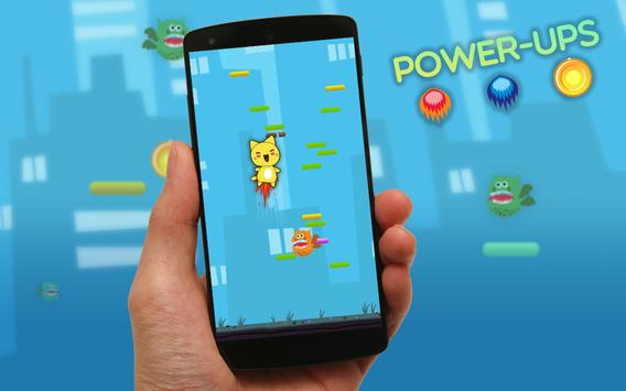 Help the little kitty jump from platform to platform, collect tons of powerups, avoid monsters, obstacles and reach for the sun!