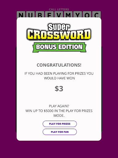 This digital game plays just like the popular BCLC Super Crossword Scratch & Win ticket. Match call letters to a crossword puzzle to reveal words. Play for fun – or players, who are at least 19 years of age, can play for a chance to win cash prizes. It is important to note that we do not accept wagers, bets, or payments of any kind through our website/apps and we only offer age-controlled products that are sold at authorized retailers within the province. Thank you.