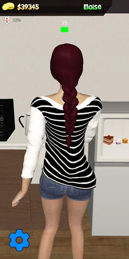 She can go to the kitchen to eat, to the bathroom, to the toilet, to the sofa, to bed and to play sports. There are games hidden in some objects. Try clicking on the remote control on the sofa.