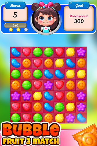 Help Bubble Fruit 3 match to collect all kinds of fruits and candy, Are you ready for tBubble Fruit 3 match?