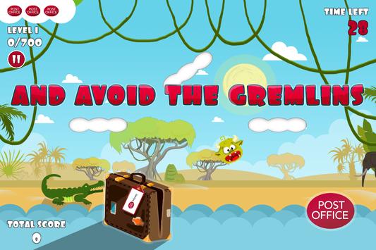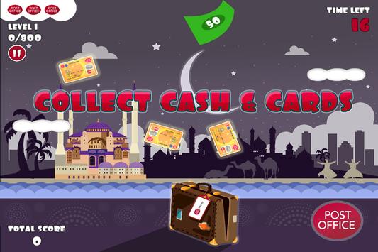 Travel around the world with Post Office Cash Collector, grabbing as much cash and Travel Money Cards as you can along the way. Use the Post Office suitcase to catch cash and Travel Money Cards as they fall from the sky.