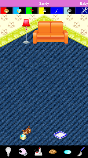 - Lamp: click on it to send your virtual pet to sleep or wake it up. To load up the tiredness bar put your cat in sleep state.