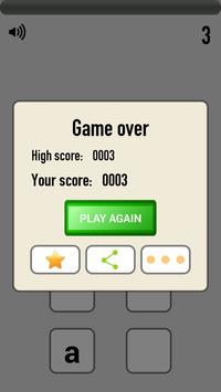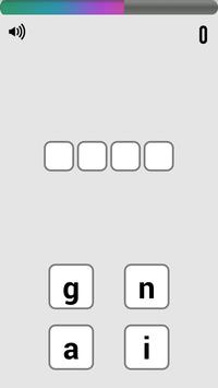 Guide play: Each turn players will have four English letters, the player's task is to match that of a four-letter English words valid. Time per innings is ten seconds.