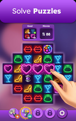 * SOLVE exciting match 3 puzzles that range from easy to hard!