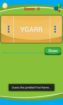 In the same way many names (first name of players) are jumbled and shown to you to guess the correct one.