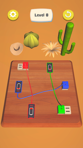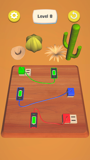 Untie cables to charge phones. Open gifts and unlock new environments! Fun to play game with cool graphics.