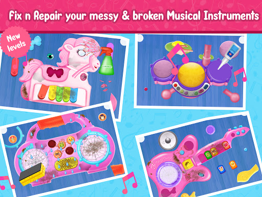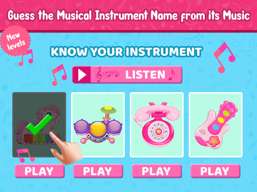 The Game has many Pink musical toys in bright pink colors and shapes that can play beautiful music. Musical Instruments for girls to make every girl happier and feel like Princess!
