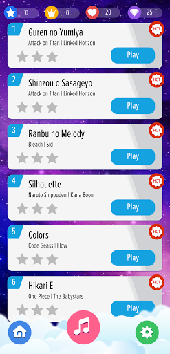 Tap faster to beat your tapping speed, and enjoy the anime, classical and pop music tiles. This game provide you all anime popular songs / OST (Naruto, One Piece, Attack on Titan, and many more).