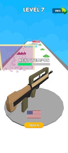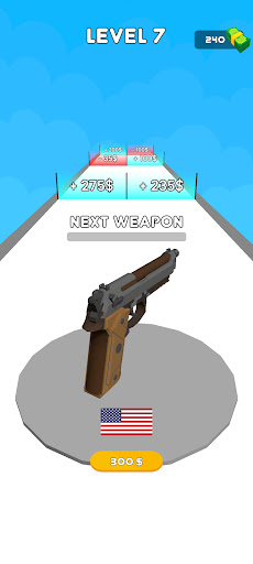Welcome to the thrilling world of Gun Evolution! Take control of powerful firearms as you embark on an exhilarating endless runner experience. Upgrade your weapons by passing through special gates that enhance their abilities. Customize your arsenal by changing the weapon's country. Increase the value of your firearms and, at the finish line, decide whether to collect or sell them for profit to boost your starting skills.